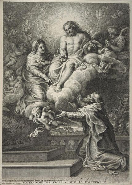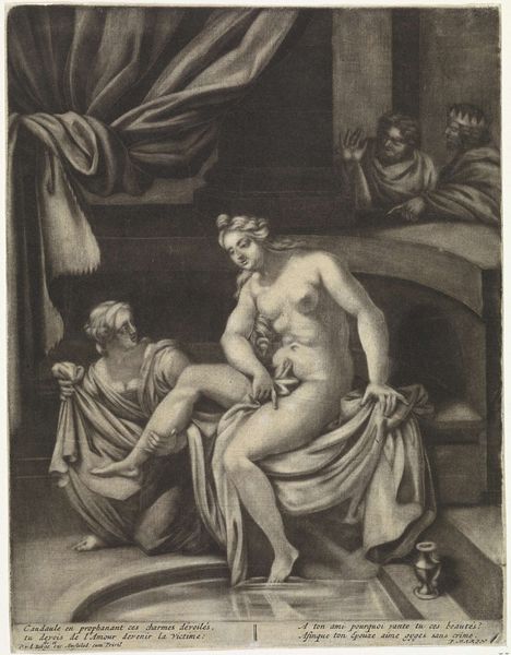 Jacob Gole created this engraving, "Suzanna en de ouderlingen," using a technique that was both widely accessible and highly skilled. Engraving involves meticulously cutting lines into a metal plate, in this case copper, with a tool called a burin. The plate is then inked, and the surface wiped clean, leaving ink only in the incised lines. When paper is pressed against the plate, the image is transferred. The fineness of the lines, the density of the cross-hatching, and the overall tonal range all speak to Gole's mastery. The beauty of engraving lies in its reproducibility. Unlike a unique painting, prints could be disseminated widely, bringing art to a broader audience, effectively democratizing art consumption. However, it also depended on a system of labor, with workshops of skilled artisans producing these images for a growing market. The resulting prints, therefore, reflect both artistic skill and the social and economic structures of the time. Understanding the material process of engraving helps us appreciate not only the artistry, but also the work’s place within the broader context of labor, production, and consumption in the 17th and 18th centuries.