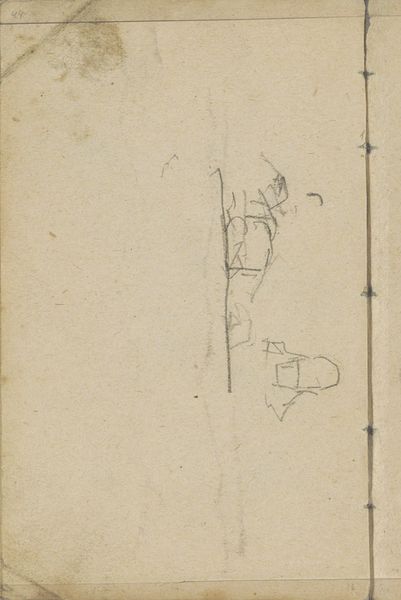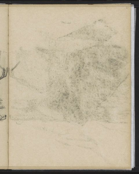Editor: Right now we're looking at George Hendrik Breitner's "Figuurstudie," a pencil drawing on paper from somewhere between 1887 and 1891, here at the Rijksmuseum. It's really just a quick sketch. The marks are light, tentative almost. There’s an area of smudged graphite and other stray marks. What do you see in this piece that I might be missing? Curator: It’s a whisper of a thing, isn’t it? Like catching a fleeting thought before it vanishes. For me, this drawing isn’t so much about what it depicts—perhaps a figure and a carriage—but more about the *act* of seeing, the very moment an artist's eye selects something from the world and tries to grasp it. The rapid notations evoke a memory that risks fading away, it almost demands that one creates one's own narrative. Do you get that feeling too? Editor: Yes, I see what you mean, it really feels like a moment captured, almost on the run. Curator: Exactly! Think about the Impressionists, Breitner's contemporaries, who were all about capturing fleeting moments of light and atmosphere. This sketch feels like their ethos distilled down to its purest form, it has elements of a landscape perhaps. It lacks that feeling of the gaze meeting the model's though, doesn't it? Editor: Definitely, it doesn’t have that sense of mutual observation or, you know, relationship. It is quick, unstudied. What feels modern about it is that is feels raw and fragmentary. I appreciate that this museum shows all aspects of an artist's works, not only polished pieces. I hadn't quite considered the immediacy of a preliminary sketch as being important. Curator: And sometimes, in that rawness, we find an honesty that's often lost in a more polished work. It is about the gesture and the eye making a memory. So next time you’re rushing somewhere, maybe try a little sketch instead of a photo – it just might capture something more!