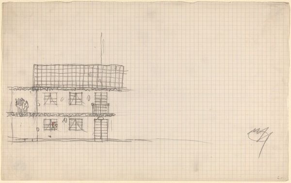 Here we see Josef Hoffmann's architectural drawing, likely rendered with graphite on paper. The symmetrical facade immediately brings to mind classical temples, echoing a longing for order and harmony, as well as ideas of permanence. Consider the repeated motif of the square windows. Squares, often seen as symbols of stability and rationality, appear throughout various historical periods. We may also see the grid reappearing as a larger pattern in city planning or even artistic compositions. The subconscious desire for order is ever-present, isn't it? However, the regularity of the grid is juxtaposed by arched openings. These softer lines may evoke a sense of humanism and the passage of time. This contrast embodies a dialogue between Apollonian rationality and Dionysian emotion, a balance our minds constantly seek. In essence, the facade becomes a canvas where collective memories intertwine with our deepest emotional aspirations.