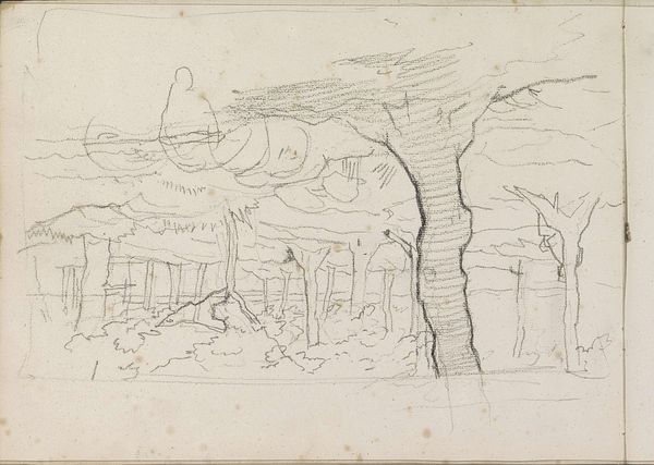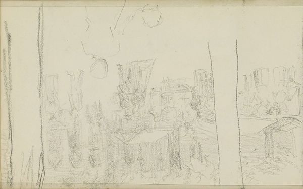 Curator: This is Jean-Honoré Fragonard's "Composition Study; verso: Composition Studies," held at the Harvard Art Museums. Editor: It's like a fleeting thought captured in wisps of pencil. The composition feels airy, almost dreamlike. Curator: Fragonard, working in the 18th century, often sketched rapidly, exploring various arrangements of figures and landscapes, reflecting the era's evolving social and political landscape through pastoral themes. Editor: Note the use of line – it's incredibly economic, yet it manages to suggest depth and movement. The structural underpinnings are quite powerful. Curator: Indeed, it gives us insight into the artistic process, echoing the Enlightenment's emphasis on reason and observation, yet hinting at the coming Romantic focus on emotion. Editor: This study is pure form, stripping away narrative to focus on the syntax of seeing. I appreciate how it holds so much potential. Curator: Yes, it's a reminder that even in preliminary sketches, we can find traces of broader cultural currents. Editor: A gem of pure visuality, ripe with possibilities.