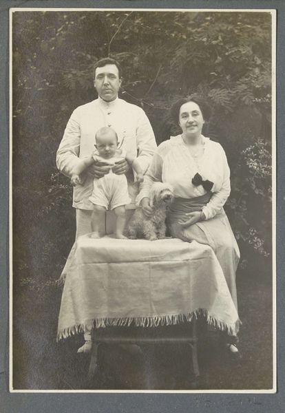 This photograph was taken by Klaas Kleiterp in Madjene, on the island of Celebes, at an unknown date. It shows Klaas with his wife and children. The photograph itself, made using a chemical process to capture light, is an everyday technology, reflecting the increasing availability of image-making at the turn of the century. The family is dressed in immaculate white clothing, the woven texture of the wicker chairs contrasting with the smooth material of their garments. The process of colonial administration in Indonesia involved intense labor, for the people who lived there. The colonial administrators needed to present themselves as impeccably well-turned-out masters of the domain. Understanding this photograph means considering the social context of its production. The image is an artifact of the colonial project, a material document of the era. The photograph challenges traditional distinctions between art and craft, inviting us to see how they are connected.
