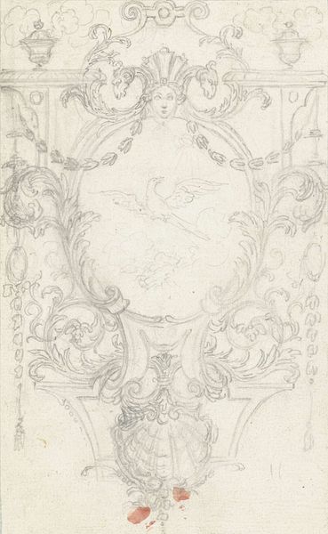Joakim Skovgaard sketched this design, titled "Udkast til samme bind som recto," using graphite. Skovgaard was working during a time when faith and national identity were deeply intertwined in Denmark. We see this in the ethereal figure at the center, possibly a representation of spiritual awakening or enlightenment. Notice the swirling patterns surrounding it; these could symbolize the currents of cultural and religious thought that were shaping Danish society. Skovgaard lived in a society that was predominantly patriarchal, which might explain the figure's androgynous features, seemingly pushing back against rigid gender norms. The work also invites us to reflect on the personal quest for meaning and truth, at a time when traditional religious narratives were being questioned. This sketch serves as a poignant reminder of the intertwined nature of identity, faith, and the search for understanding in a changing world.