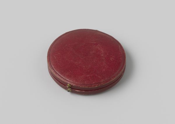 Editor: So this is a photograph of a pen box, crafted from red leather, sometime between 1800 and 1900. It’s anonymous, adding to its mystery, don't you think? I'm struck by how…contained it seems. What do you see in it? Curator: That containment is key. What narratives are suppressed or protected within such a meticulously crafted object? The red leather itself speaks volumes. Consider the semiotics of color – red historically links to power, status, and even violence. Was this a box for official documents, for declarations of love, or perhaps even secrets better left undisturbed? Editor: That's a powerful interpretation! I hadn't considered the colour symbolism. Do you think the intended audience influences its design? Curator: Absolutely. The gold trim adds another layer. Gold denotes value, exclusivity. Who was this box intended for? Was it a gift from a colonizer to curry favour, a repository of power during imperial rule? Perhaps, also think about who was excluded from accessing objects such as this: whose voices remained silenced? The photograph itself performs this historical act of silencing as it is an anonymous photograph of an anonymous box. It's as though the past wishes to erase any evidence of wrongdoing! Editor: So the image invites us to imagine what it may contain. What do we gain by speculating this way? Curator: By looking closer we bring the act of colonial subjugation and power back into the realm of visual discourse, it asks of us that we recognize it, talk about and analyze its use. This object exists beyond its mere functionality; it becomes a focal point for reflecting on historical legacies and power dynamics still active in today’s society. Editor: That really shifts my perspective. Thank you! Curator: My pleasure. I’m always excited to see how historical objects trigger a dialogue on broader sociopolitical topics!