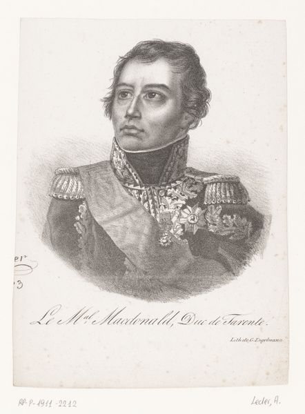 This is a portrait of Charles Ferdinand, Duke of Berry, made with a printmaking technique by L. Desmarets. The fine lines and detailed shading you see are achieved through a process that could involve etching or engraving, meticulously transferring an image onto paper. The material properties here are key. The paper itself, likely handmade and luxurious, speaks to the sitter’s aristocratic status. But equally important is the skilled labor that went into creating this image. The engraver would have needed years of training to master the techniques, using specialized tools to carve the intricate design into a metal plate. Consider how this contrasts with the Duke’s own position, one of inherited privilege. This print, while ostensibly celebrating his status, is also evidence of the hard work and skill required to produce it. In a way, the print medium democratizes the image, making it reproducible and accessible, challenging the traditional boundaries between fine art and craft.
