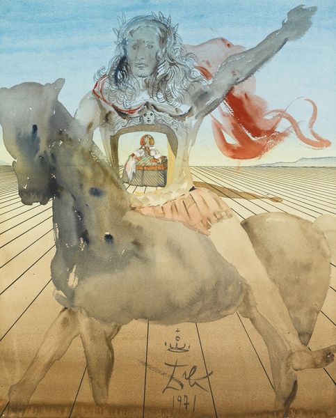 Salvador Dali made this watercolor, titled Les Vendangeurs, sometime in the 20th century, and he uses a fairly muted palette to conjure a vivid dreamscape. The paint handling is very controlled, allowing him to create precise, linear forms with subtle washes. There's a peculiar sense of scale at play here. The elephants and the figures all appear to be engaged in their own dramas, yet they coexist in the same ethereal space. The elephants, with their spindly legs, are like fantastic creatures from a storybook. In the center of the scene, we see a figure elevated upon a cloud, with a butterfly strangely attached to their body. Dali emphasizes this figure through contrast, making them the focal point of the composition. Dali's dreamscapes remind me a little of Max Ernst's surrealist collages, where disparate elements are brought together to create uncanny and unsettling images. Art really invites us to let go of our expectations and embrace the unexpected.