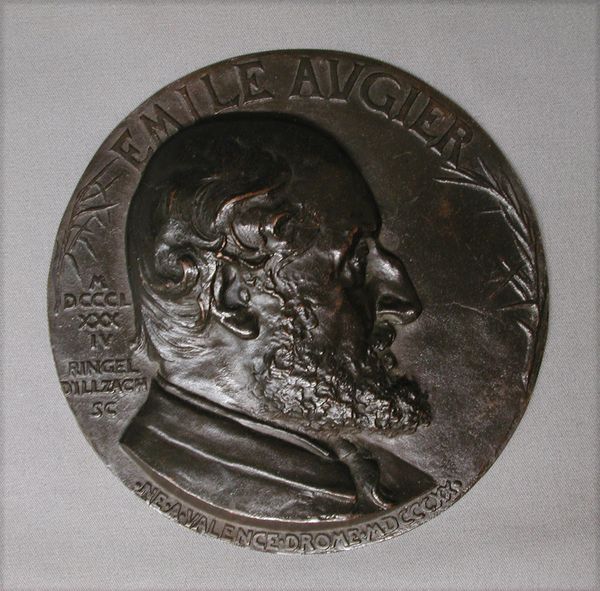 This bronze plaquette, honoring Émile Zola, was crafted by Alexandre Charpentier. It is a powerful testament to Zola's influence, yet its classical medallion form carries echoes of ancient Roman commemorative art. The profile portrait, reminiscent of imperial portraiture, elevates Zola, suggesting his significance to French culture. This format can be traced back through Renaissance medals to ancient coins celebrating emperors and thinkers. But instead of a laurel wreath, Zola wears a simple, modern suit, grounding him in his contemporary reality. This conscious blend of classical form and modern subject reflects a broader cultural impulse – to find timeless value in contemporary figures. By casting Zola in the mold of classical heroes, Charpentier invites us to consider the enduring impact of Zola's work, suggesting that his words, like the images of emperors past, will resonate through the ages.