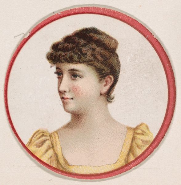 This portrait of a woman was made by the Kinney Brothers Tobacco Company as part of their 'Novelties' series. These small cards, included in cigarette packs, reflect the late 19th-century American culture. The woman’s refined features, elaborate hairstyle, and fashionable dress signify a certain social class and ideal of beauty. Consider the role of advertising in shaping cultural norms. How did commercial images like this one contribute to the construction of femininity and social status? Tobacco companies were major players in the popular imagery and consumer culture of this era. Their products both reflected and influenced social trends. To understand the context, we can look at marketing archives and sociological studies of the period. The meaning of this image lies not just in its aesthetic qualities but also in its function as a commercial object embedded in a specific historical moment.
