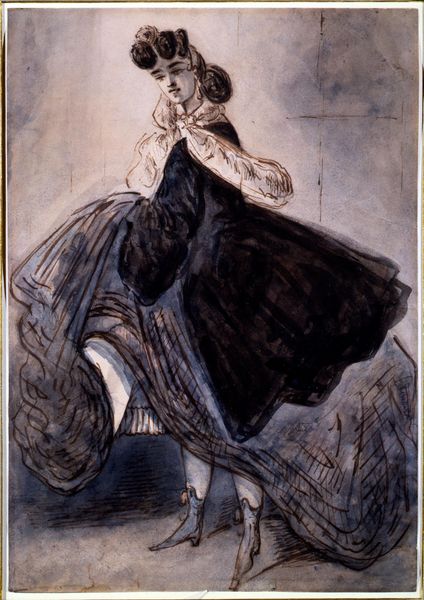Editor: Here we have James Tissot’s “October,” created in 1878. The woman is dressed impeccably in dark, lavish fabrics surrounded by trees displaying golden foliage; it has a very wistful, serene mood. What stands out to you about this piece? Curator: Immediately, the craftsmanship of the clothing jumps out. Consider the labor involved in creating that ruffled dress, the tailoring of the coat, the fur trim. The materiality of these items speaks to a particular class and their consumption habits. And the leisure implied by being able to stroll through the landscape in such attire. Editor: That’s interesting. I was mostly focused on the woman's expression. Curator: But even her expression is a product of her circumstances. Her leisure, her class… how does the painting’s setting play into this? Editor: It’s a very picturesque landscape. The falling leaves definitely contribute to the title, "October", connecting it to the harvest time. But the woman seems disconnected from any real labor. Curator: Exactly! This "plein-air" painting aestheticizes the season, almost selling the very idea of it as a product, separate from any lived experience. Even the act of painting en plein air suggests a commodification of the natural world. Don’t you think? Editor: I see your point now; there’s this almost…manufactured feel to the ‘natural’ scene through her gaze and social positioning. Curator: Precisely. Thinking about the materiality of the painting itself – oil paint on canvas - is important too. Where did those materials come from, who produced them? It's a network of production that underpins even a seemingly simple scene like this. Editor: I’d never thought about it that way. Focusing on materials reveals a lot more about the artwork and society at the time. Thank you! Curator: It is important to remember that focusing on materials helps reveal a deeper narrative of the artwork.