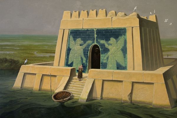 Nicholas Roerich made this scene, *Russian Easter*, using what looks like tempera or maybe thinned oils to capture a spiritual moment. There's something about the way he builds up these muted blues and ochres that feels both dreamlike and solid, like a memory trying to take shape. I keep coming back to how Roerich handles light here. Look at how the procession glows against the dark blues of the night. There's a feeling of upward movement, both of the crowd and then, in the way, the light bounces off the architectural forms of the building. The paint application looks intentionally flat. This forces us to see the church as a solid geometric form, not as something ethereal, and I feel that it makes the procession and the moment all the more magical. Roerich reminds me a bit of Marsden Hartley, with his simplified forms and mystical subject matter, but Roerich is a bit more of a fantasist and less of a formalist, and that's okay. Art is about letting these different voices speak to each other, after all.