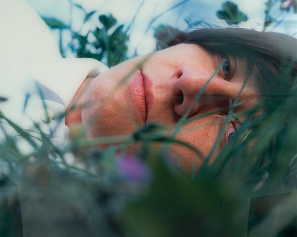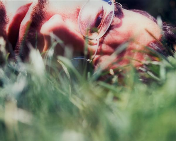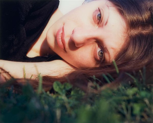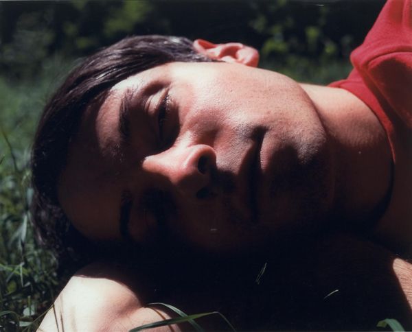Editor: This is "Caca" by Phil Collins, from the Tate Collection. It's a photograph, quite intimate, cropped so close to the subject’s face. It gives me a slightly uneasy, voyeuristic feeling. What do you see in it? Curator: Uneasy is a good word. The title itself, "Caca," is a bit of a dare, isn't it? We're invited to look at something deeply personal, almost repulsive in its vulnerability. The grass, the light—it’s all so close, like a memory half-forgotten. Perhaps Collins wants us to confront our own discomfort. What do you think? Editor: I think you’re right. It's definitely challenging. It makes me think about beauty and ugliness, and where the line blurs. Curator: Exactly! Art that makes you question is often the most rewarding. Thanks for noticing that.
