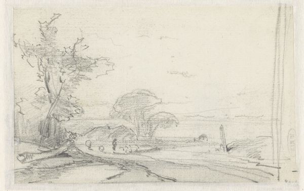 'Vlak landschap met rechts een boomgroep,' or 'Flat landscape with a group of trees on the right', was made by Pieter de Molijn using black chalk. The Dutch landscape paintings of the 17th century were closely tied to national identity. They emerged during a time when the Dutch Republic was solidifying its independence and cultural distinctiveness. These landscapes, far from being neutral depictions, actively shaped perceptions of Dutch identity. Looking at this simple composition with its low horizon line, we can see Molijn's interest in the landscape as a mirror reflecting cultural values and national pride. It is a celebration of the pastoral, rooted in the economic and social transformations of the time, reflecting a move from religious to secular interests. These landscapes were a way for artists and their patrons to assert their connection to the land, to claim ownership and belonging. They highlight the emotional connections tied to homeland, which remains pertinent to conversations about identity today.