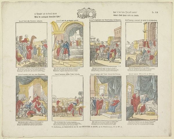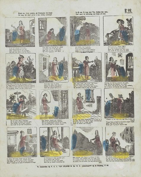 This undated print, "Verschillende taferelen," by Schalekamp & Van de Grampel, presents a collection of miniature scenes, each a snapshot of daily life rendered with delicate lines and subtle color washes. The overall structure is organised into a grid, this compositional choice is not merely decorative; it signifies an attempt to systematically categorise and present various aspects of human experience. Each scene, though small, is meticulously detailed, suggesting an underlying desire to capture the essence of each moment. The restricted palette, dominated by muted earth tones and soft blues, adds to the print's contemplative mood. The artists are not just depicting scenes but are also engaged in the process of meaning-making through structure. The grid is not a restrictive frame but a stage upon which the artists explore the nuances of ordinary life, inviting us to reflect on the significance of these everyday moments.