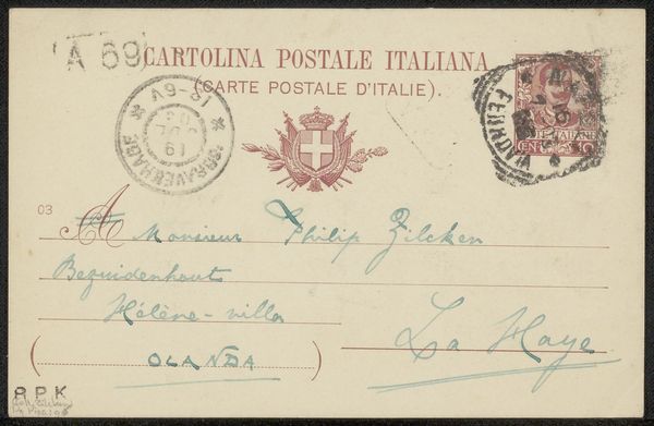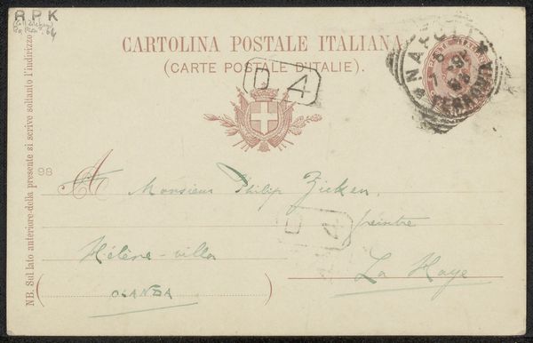 Editor: Here we have "Briefkaart aan Philip Zilcken," which translates to Postcard to Philip Zilcken. It's a photographic postcard, possibly from 1908, with added ink details. It feels intensely personal. How do you interpret this intimate message from Vittorio Pica? Curator: This isn’t merely a postcard; it’s a document of artistic exchange embedded in a specific historical context. Considering Pica’s influence as an art critic who championed the avant-garde, this postcard becomes more than just a greeting. It’s a connection, possibly an affirmation, between two artists navigating the Italian art scene of the early 20th century. We must ask: what socio-political currents were influencing artistic circles at this time and how might that relationship play out? Editor: So, you see it as a commentary on artistic relationships and the environment in which those occurred, rather than simply correspondence? Curator: Precisely. Consider the recipient, Philip Zilcken, also an artist. The postcard itself becomes a miniature stage upon which issues of artistic validation, patronage, and even competition are acted out. Whose work was seen and valued? Whose voices were amplified? In addressing Zilcken as “pittore” [painter], Pica affirms Zilcken's place and visibility. But it also subtly establishes a hierarchy. Editor: That's fascinating! It hadn't occurred to me that even a simple postcard could carry such weight. Is there significance to it being a photograph, in contrast to a painting? Curator: Absolutely. The rise of photography in this era challenged traditional notions of artistic skill. A photographic postcard blurred the lines between mass production and artistic expression. This invites us to contemplate the politics of representation and how artists positioned themselves within these rapidly changing mediums. It opens up questions around access and art making as social practices, beyond purely aesthetic considerations. Editor: I hadn't thought about how a seemingly simple card could unlock so much insight. Thank you! Curator: The past always informs our present. Considering it is our job as curators to open it.