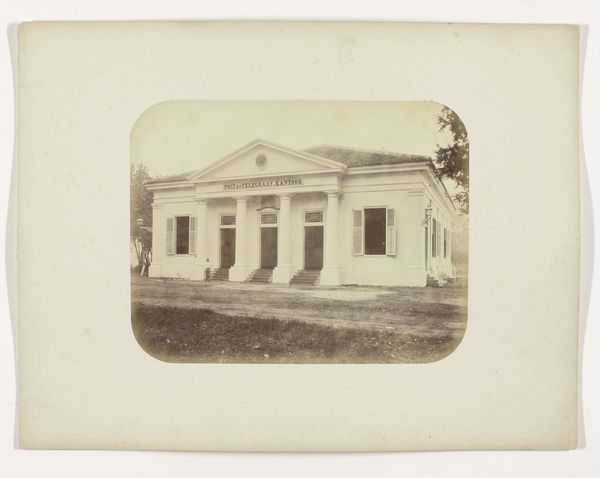 Curator: What a remarkably still scene. There's a sort of sepia-toned tranquility to this photograph. Editor: Indeed. This albumen print by Herman Salzwedel, taken between 1876 and 1884, offers a view of "The house of a well-to-do Surabayan," in what was then the Dutch East Indies. The albumen process, of course, involving egg whites... the delicate tones are characteristic. Curator: I am struck by that implied colonial gaze though. It's presented almost as a... specimen. This 'house' as opposed to a home with its residents. Where's the life? Editor: Precisely. The absence is deafening, isn't it? These colonial images, often commissioned or created for Western audiences, served a clear purpose. Beyond documentation, they projected power and a particular vision of the East, often highlighting wealth to justify trade interests. Curator: Consider the labour behind this image, too. Not just Salzwedel and his equipment, but those involved in preparing the albumen, constructing and maintaining that house… their stories are essential, invisible though they may be here. The house itself is a monument to exploitative labour practices, really. Editor: The columns especially feel significant. Attempting a kind of European aesthetic in the east, the clean and classicizing influence betrays its intention. Even the choice of photographing a home that openly imitates this kind of 'civilized' architectural sensibility, for audiences at home, speaks volumes. Curator: So the photograph becomes a commodity as well, facilitating the trade of not only goods but also cultural capital. These houses, constructed with readily available resources, also functioned as symbols of authority to shape cultural perspectives for profit. Editor: Exactly, and seeing it framed now within the context of a museum collection… that act of selection, that conferral of value… reinforces a historical narrative, it asks us to think about those institutional choices as well as what we see in the print itself. Curator: Yes, absolutely. Considering this specific time, it’s essential to deconstruct this image and think about how to reconstruct its narrative, so viewers can connect with a richer, multi-dimensional story and the lives connected to this captured image. Editor: A valuable provocation—it certainly urges a closer examination.