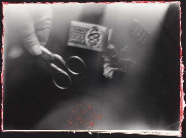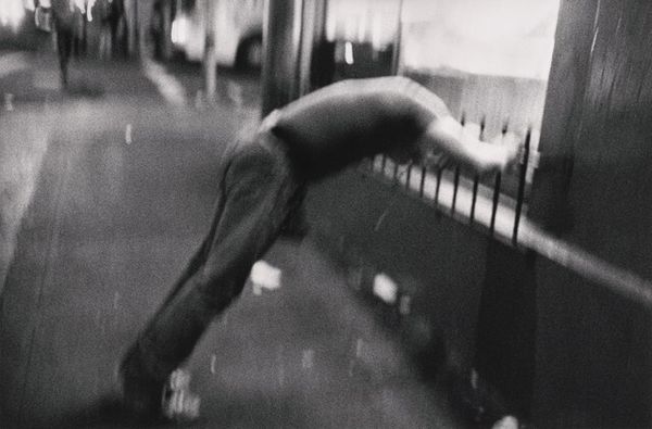 Ralph Eugene Meatyard made this untitled photograph, likely in the 1960s, using a camera, lens, and film to capture a moment that feels both staged and spontaneous. What strikes me is the tonal range, how the light and shadow play, almost like a drawing in charcoal. The texture of the wall, the way the light scrapes across the floor – you can almost feel the grit. Then there are the figures, one lying down, blurred, and another sitting back in the darkness. The blur makes me think about time, how a photograph is always a record of a duration, not just a static thing. It's like Meatyard is showing us the impermanence of the moment, the way things are always shifting and changing. It reminds me of some of Diane Arbus’s more unsettling images, that same sense of unease and mystery, but with a more personal, poetic touch. It's this kind of image that reminds me that art is less about answers and more about asking interesting questions.