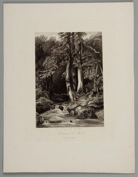 Editor: This print, "Indian Settlement" by George Baxter, depicts a scene in what looks like a tropical area. The colors are so vibrant! What stories do you think this image is trying to tell? Curator: Notice the prominent use of lush vegetation. It evokes the symbolic idea of 'untamed' nature, a common theme in depictions of colonized lands. How does that relate to the people in the boat versus those on shore? Editor: I guess there's a contrast between exploration and the local inhabitants and their culture. Curator: Exactly. Baxter's details encourage you to remember how images shape perceptions. We can still see the vestiges of colonial attitudes embedded here. Editor: That's a powerful reminder about the subtle messages images can carry.