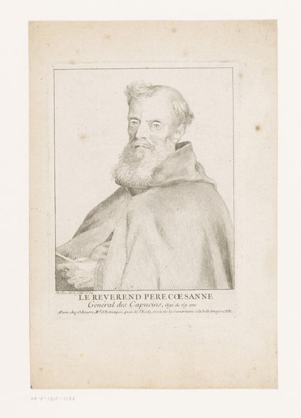 Editor: So, this is a portrait of François Harlay de Champvallon, made sometime between 1600 and 1667, by Michel Lasne. It's an engraving, which I find amazing given the level of detail. It strikes me as quite austere, almost imposing, but also with a subtle air of... wisdom, maybe? What do you see in it? Curator: You know, when I look at this, I don't just see an archbishop; I see an individual navigating the turbulent waters of 17th-century France. Lasne has captured a certain gravitas, hasn’t he? The eyes, they almost seem to hold a question. And the beard... it’s like a cascade of distilled thought. Do you think Lasne intended to convey the weight of responsibility in his depiction? Editor: Absolutely. And the text underneath the portrait – I hadn't focused on it initially, but it adds another layer, hinting at his theological work and judgements. It’s like a mini-resume etched in ink! Does the style – is it Baroque, right? – contribute to that sense of power and authority? Curator: Good question. Yes, the Baroque elements are certainly present – that attention to detail, the dramatic lighting, even in an engraving, hint at that period. But there's a restraint here, too. It’s not the full-blown theatricality you might expect. Perhaps Lasne was aiming for a more nuanced portrayal, revealing the inner workings of a complex mind. You notice how the lines create depth despite it being an engraving. It feels so…tactile! Editor: It does. I initially saw austerity, but now I see layers. A person wrestling with ideas, with power, with faith. Thanks for pointing that out, it’s changed my perception completely. Curator: And that, my dear editor, is the magic of art – constantly revealing new depths! A shared experience creates shared insights, doesn’t it?
