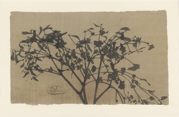 Curator: Richard Tepe's "Phoenise Canariensis in pot tegen egale achtergrond," likely created between 1900 and 1940, captures a potted palm in exquisite detail using photography. Editor: There's something incredibly serene about this. The soft sepia tones and the precise framing create a still and contemplative mood. It's more than just a photograph; it feels like a meditation on form. Curator: Tepe's expertise with photographic print processes is clearly on display. The choice of materials and technique transforms a simple botanical subject into a delicate work of art. What interests me most is the plant itself; a mass produced Phoenix palm versus the handmade, artisan print. Editor: And it raises some important questions about the democratization of imagery, doesn't it? Here’s a photographic image of something once considered exotic becoming increasingly available. It speaks volumes about cultural exchange and consumerism at the turn of the century and a potential rise in the market and interest in domestic botany. The distribution methods, galleries, public accessibility, it all comes into play. Curator: Precisely! And don't forget the physical process of crafting the image. The quality of the print indicates a dedicated and meticulous labour, from preparation to exposure. This object highlights that labour and materiality is paramount. Editor: Thinking about it more broadly, I'm fascinated by what this suggests about the contemporary display of nature in urban spaces, both through botany, art, and other imagery. It reflects back the ongoing dialogue surrounding nature, commodity, art, and its place within the social and economic structures of society. Curator: A powerful connection to bring forth, thinking of labour and commerce…Thank you for highlighting such a unique perspective, broadening my thinking beyond just the material conditions and creation of the work. Editor: Likewise! The conversation has brought new appreciation of this image as more than botanical document, making it a real artefact of societal change.