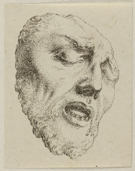 Christian Bernhard Rode created this etching of a man’s head with closed eyes sometime in the 18th century. This print is not simply a portrait but is an exercise in physiognomy, or the study of facial features to determine character. This interest in the face developed during the Enlightenment, when thinkers sought to classify human types based on external characteristics. Rode was active in Berlin, which became a center for Enlightenment thought under Frederick the Great. The print’s inscription, “Schüler Exerzitium,” suggests that this work may have been an exercise for Rode's students, intended to teach them to capture a range of emotions. As historians, we look to period texts, like Johann Caspar Lavater’s “Essays on Physiognomy,” to understand the cultural context of such images. This print reveals the intersection of art, science, and education during the Enlightenment, reflecting the era’s drive to understand and categorize the human experience.