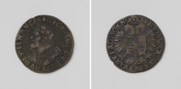 Curator: This is a Dutch “rekenpenning,” or reckoning penny, minted in 1676 by order of the Council of Finance to commemorate King Charles II of Spain. Editor: It’s striking, even though it’s just a small coin. The dark, worn metal and crisp lines of the engraving give it such a solemn, weighty presence. Curator: It certainly tells a story! Reckoning pennies were used as counters for calculations, often on a counting board. Their designs often held political or social significance. In this instance, it’s acting almost as a piece of propaganda or a symbolic gesture. The Dutch Council of Finance created this to represent Charles. Spain was a very important power and these coins could indicate strategic political messaging on the part of the Dutch. Editor: I find the imagery fascinating. The profile portrait on one side obviously represents King Charles. He’s surrounded by text which speaks to his position and titles. And the heraldic imagery of the lion rampant on the other side feels incredibly forceful, especially because of the placement of the crown just above it. The year "1676" flanking either side reinforces a specific point in time and royal authority. Curator: The imagery definitely reflects Charles's power and legitimacy at a time when Spain's influence was being challenged in various parts of Europe. The Dutch Republic, itself a rising power, would have been very aware of these power dynamics and would likely have hoped to show off this awareness through minting coinage such as this. This “rekenpenning” essentially becomes a visual representation of power dynamics. It circulated at a specific moment when these political relationships were tense, making it a historical marker as well as a symbol of royal power. Editor: So the images become not just decorative, but a shorthand for very complicated and contingent relationships. A visual contract, almost. It makes you wonder about the hands it passed through. Curator: Absolutely. I find this "rekenpenning" a testament to how even the smallest objects can encapsulate significant historical and political narratives. It really demonstrates that public image could be very carefully crafted and disseminated. Editor: I agree completely; this single piece really lets us reconsider not only Dutch-Spanish relations, but how power and information are communicated visually. It also emphasizes that something small, functional, and almost mundane can actually wield an outsized influence and importance.