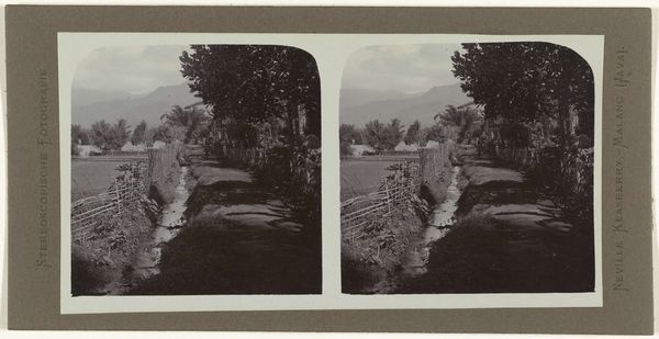 Curator: Looking at "Rotsachtige stroomversnelling in een rivier nabij Prigen op Jawa" captured by Neville Keasberry between 1900 and 1935, it’s evident that the gelatin-silver print offers more than just a landscape. Editor: Absolutely. The composition gives me a sense of subdued strength, if that makes sense. The way the light interacts with the cascading water evokes the passage of time, the water continually flowing yet somehow unchanging. Curator: The creation of this particular silver gelatin print by Keasberry necessitates a deep dive into his method. Pictorialism blends into the realism present; it’s as if Keasberry intended to draw attention to photographic process as labor and artistic product simultaneously. This particular method brings in diverse visual approaches, and perhaps even, competing epistemologies. Editor: This tension makes sense considering it was taken during a time when Java, or Jawa as the title says, was undergoing significant transformations under Dutch colonial rule. The landscape is portrayed in an objective lens, but what’s also interesting is considering the representation of nature amidst exploitation by European colonial powers at that time. How can art act as a medium of advocacy? Does Keasberry adopt such a position? Curator: I believe understanding the value in the technology and process can shed light on some possible intentions of Keasberry’s artwork. We can only make an assumption here, but thinking of Keasberry’s tools as both mechanical but simultaneously capable of imbuing social awareness through material handling and labor reveals what is a rather clever approach to representing Javanese lands in times of transition. Editor: Indeed, these representations provide us the necessary entry point to address topics like place and power that were important at the turn of the century. By looking at his body of work, what else do you think Keasberry might be revealing through process? Curator: This photo allows us to speculate what the role of technology had on the landscape itself through time, and allows us to reflect on the methods in which human labor helped establish and manipulate images in the service of documenting such eras in transformation. Editor: Very well said. I guess these gelatin prints can be deceptively potent mediums after all.