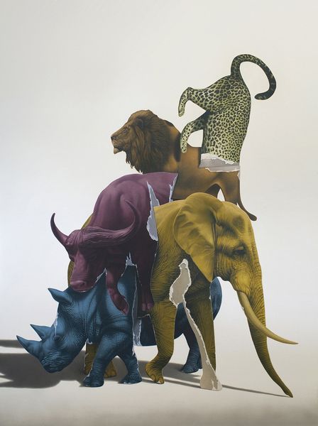 Alex Gross made this painting, Shopaholics, in the early 21st century. The work presents two sheep-headed people laden with luxury shopping bags, all set against a backdrop of Louis Vuitton logos, while vultures circle around them. Gross’s hyperrealist style combined with surrealist imagery provides commentary on contemporary consumer culture. The use of animal heads on human bodies brings to mind the tradition of fables, where animals are used to represent human characteristics and behaviors. Here, the sheep may symbolize the idea of blindly following trends or being easily led, suggesting a critique of consumerism. The vultures, traditionally associated with death and decay, could represent the destructive nature of excessive consumption. The inclusion of luxury brand logos and shopping bags from high-end retailers situates the artwork firmly within a critique of consumer society and capitalist excess, of the kind one finds in the USA. A deeper understanding of this work requires one to research the social and economic conditions of the early 21st century, particularly the rise of consumer culture and its impact on individual identity and social values.