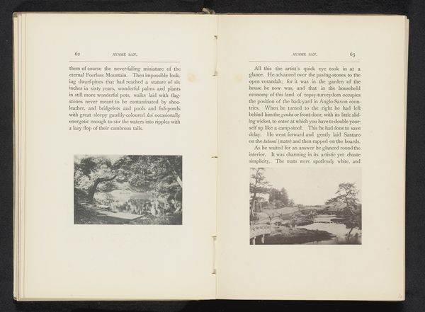 This is Jules Gervais-Courtellemont's depiction of Algiers, Algeria, captured through the lens of an early photographic process. Note how the composition is divided: one side shows a ship at sea with a rocky foreground, while the other presents a path enveloped by dense foliage. The image plays with contrasts. In the seascape, we see sharp, angular rocks against the fluid, open sea, evoking a sense of ruggedness and maritime adventure. This contrasts with the path, which feels enclosed and calming due to the repetition of vertical lines formed by the trees. The photograph functions as a cultural artifact, reflecting early 20th-century colonial encounters. It invites us to consider how photography played a role in constructing and disseminating images of distant lands. It highlights the selective framing and aesthetic choices inherent in the act of representation, which can shape our understanding of different cultures and environments. Notice the texture and the grayscale tones, elements of its time, contribute to the evocative and historical depth of this piece. The visual language evokes an exotic, faraway place, shaped by both the artist's perspective and the technical possibilities of early photography.