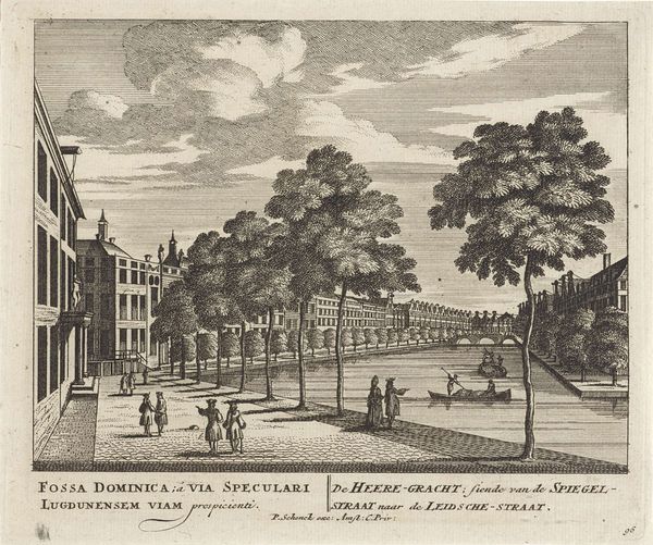 This print depicts the Achtergracht in Amsterdam. Though the artist remains anonymous, it offers a glimpse into the city's urban fabric and social life. The image creates meaning through the visual codes of its time. Made in the Netherlands, it likely reflects the Dutch Golden Age, a period of economic prosperity and cultural flourishing. The presence of boats suggests the importance of canals for trade and transportation, while the architecture of the buildings indicates the wealth and status of the residents. The figures in the foreground, perhaps engaged in conversation or leisurely strolls, hint at the social life of the city. The institutional history of art production in the Netherlands, with its emphasis on realism and attention to detail, also shapes our understanding of the image. To interpret this print more fully, one might consult historical records, maps, and social commentaries of the period. By examining such sources, we can better understand the social conditions that shaped its production.