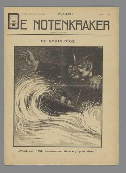 This is a newspaper cover, printed January 12, 1907, by the Dutch artist Albert Hahn. The means of production here are significant. Hahn, working in the tradition of graphic satire, would have created the image as a drawing, which was then translated into a printing plate. Consider the labor involved; from the harvesting of raw materials for paper and ink, to the press operators, distributors and news vendors. The relatively low price of 7 ½ cents made this image accessible to a wide audience, and the messages within it were intended to be even more accessible. The dark lithographic ink gives the image a stark, bold quality, perfect for political commentary. Note how the texture is created; patterns of dots suggest a range of tones, from the sinister face of Von Bulow, to the much smaller figure of a worker hunched over a desk. The statement at the bottom translates to “We have to fight social democracy, otherwise the reaction will become too powerful”. This image is a reminder of how art and labor were intertwined in the political discourse of the early 20th century.