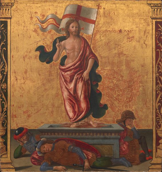 Editor: This is "The Annunciation of a Woman" by Harmonia Rosales, created in 2018 using oil paint. It presents a compelling reimagining of a classic scene. What immediately strikes me is the rich symbolism combined with what seems like a contemporary lens on the religious narrative. How do you interpret this work? Curator: From a materialist perspective, I'm drawn to Rosales's choice to use oil paint, a medium steeped in the Western art tradition, to challenge that very tradition. She is appropriating the means of production – oil on canvas, perspective, composition – to subvert and decolonize a visual language. Think about the labor involved, the hours spent mastering a technique historically used to uphold specific power structures, and now turned on its head. What does that appropriation of artistic labor signify to you? Editor: It makes me think about reclaiming a narrative, rewriting a history from a different perspective by adopting and adapting its visual language. The figures themselves, being Black, shift the power dynamic considerably. Curator: Precisely. The shift to Black figures disrupts the established iconography, inviting us to examine the cultural and social contexts that have historically shaped the Annunciation narrative. Consider the layers of meaning: the traditional symbolism, the act of painting itself as labor and resistance, and the cultural implications of representing traditionally white figures as Black. Editor: So, it’s not just about changing the figures; it’s about interrogating the entire system of art production and its historical biases. I see that the Ankh is also presented, can you talk more about that? Curator: This shifts away from a Eurocentric reading towards pre-Christian African artistic motifs and traditions. By centering African spiritual symbols Rosales is using the means of visual representation to speak to material reality through time. How does that connection make you feel? Editor: I see how the piece uses the familiar to make the viewer rethink traditional art's place and context. It is truly an original method that invites thinking. Curator: Absolutely. By considering process, material, and historical context, we reveal Rosales's complex and multifaceted commentary. I have found my appreciation enhanced.