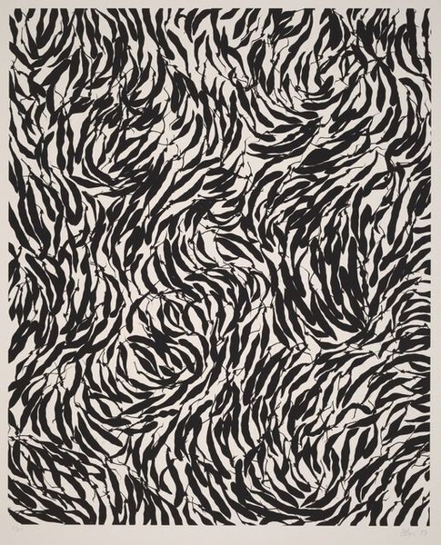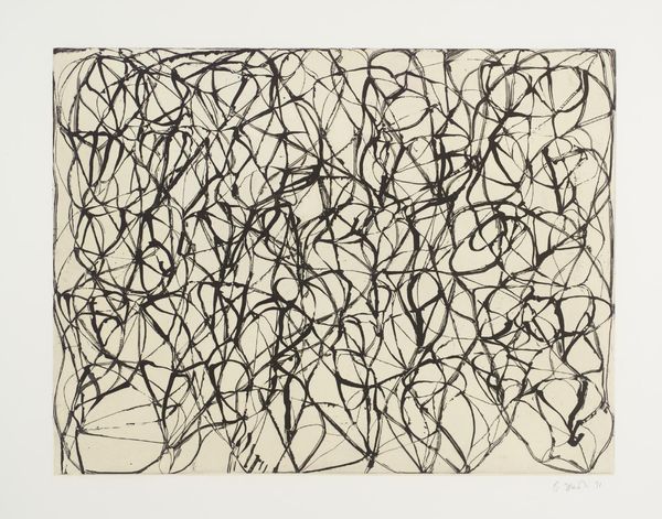 Brice Marden made this print, Richard’s Muse, from the Muses and Meres series, and it's like he’s doodling, but with serious intent. The black background feels solid, like a chalkboard, and then you’ve got these looping lines in white and a muted orange, almost like pathways. Look at how the lines twist and turn; they remind me of vines climbing a wall. The white feels raw and immediate. It's as though Marden let his hand wander, each line a new thought or a change of heart. The orange lines act as a frame, almost like they're trying to contain all that restless energy, or maybe they're just adding another layer of conversation. Marden’s work always felt like a dialogue with the history of painting, especially with artists like Cy Twombly, who also turned writing into drawing. Ultimately, this piece reminds us that art is not about answers, but about the questions we ask and the paths we explore.