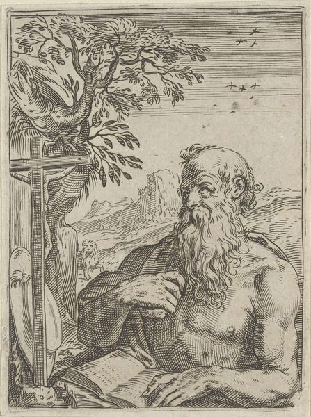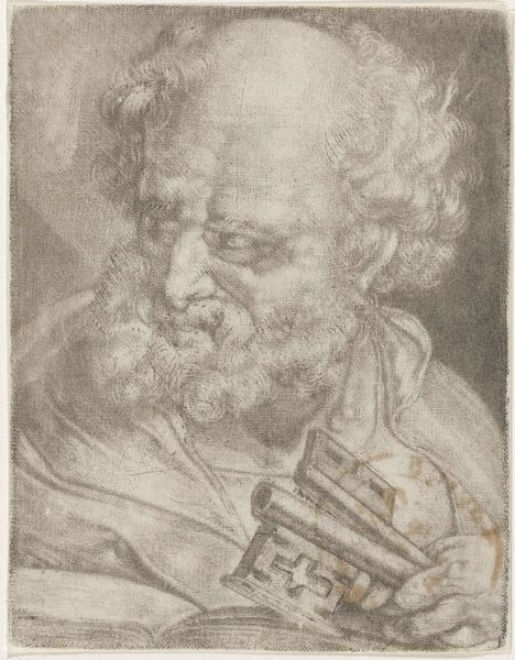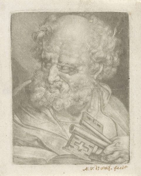 This drawing, Apostel Paulus, was created by Adriaen van der Werff, and is currently held at the Rijksmuseum. Measuring a mere 94 by 74 millimeters, its scale invites an intimate viewing experience. The composition focuses on the Apostle Paul in a moment of reflection, his gaze cast downwards. The artist's medium provides a stark contrast, setting up a play of light and shadow which enlivens the texture of his beard and the folds of his garment. Lines define form, but also create a sense of movement and energy. Van der Werff’s use of light and shadow, particularly in the apostle’s face, invites an exploration into the broader artistic and philosophical concerns of representation and perception. Note how the texture of the work isn't just aesthetic; it invites a deeper consideration of the work as a site of philosophical discourse. The artwork’s ongoing interpretation, through the lenses of form and structure, enrich our understanding and reception.