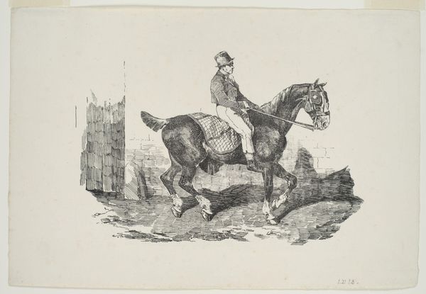 Editor: Here we have "Horses Exercising, plate 6 from Various Subjects Drawn from Life on Stone" by Théodore Géricault, created in 1821. It's a lithograph on paper, and it’s incredibly dynamic! The movement practically leaps off the page. What are your initial thoughts about the composition? Curator: Indeed, the dynamism is compelling. Notice how Géricault uses line weight to create a sense of depth and movement. The contrast between the darker, more defined forms of the horses in the foreground and the sketchier background creates a visual hierarchy. The lines are energetic, aren't they? Almost frantic. Editor: Yes, there's a real sense of urgency, even anxiety. I'm struck by how the textural variety is achieved. The coats of the horses, for example, appear so distinct. How does Géricault achieve this effect with lithography? Curator: He masterfully exploits the tonal range achievable through lithography. The strategic placement and density of lines suggest form and texture. Look at the horse’s musculature, how it is implied through the gradations of tone rather than explicitly defined outlines. Notice, too, how the lithographic crayon allows him to build up the forms slowly, to refine and redefine them, layer upon layer. Editor: So it’s the building up of tones, and not just a linear approach, that gives the image its depth? Curator: Precisely. And observe how the subtle variations in tone model the light. He's created depth without a wide range of dark to light – almost entirely in midtones. The surface of the print becomes not just a carrier of information but also a source of visual interest in itself. How do you perceive that interest functioning in the piece overall? Editor: It almost makes the piece seem unresolved somehow – but I can appreciate how those midtones help give the image a more three-dimensional quality! This really helps me appreciate the technical skill involved. Curator: Absolutely. By analyzing the formal elements – line, tone, composition – we gain a deeper appreciation for Géricault’s artistic choices and technical mastery.