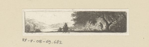 Editor: This is Pieter Bartholomeusz. Barbiers's "Landschap met figuur op brug," created sometime between 1815 and 1837. It's an ink and pen drawing. The bridge and lone figure give the piece a wonderfully tranquil feel, like a little escape. What social context can you bring to this idyllic scene? Curator: The Romantic period, in which this work was created, privileged feeling, intuition, and imagination, reacting against the industrial revolution and the Enlightenment's focus on reason. How might Barbiers’ small drawing reflect that yearning for simpler times, considering it was a period marked by the rise of a new, powerful middle class and significant shifts in land ownership and use? Editor: Well, I can see it reflecting that, for sure! The lone figure crossing the bridge evokes a personal, perhaps even solitary experience of nature, offering a counterpoint to the crowded, industrialized cities that were growing at the time. Curator: Exactly. And where do you imagine a work like this would have been seen? Was it meant for public display or something else? Editor: Considering its size, I am leaning more towards personal enjoyment - maybe pasted into a scrapbook, rather than shown on a gallery wall. Curator: Right. Drawings like this often circulated among a close network of fellow artists and patrons. That reminds me; could we interpret the bridge as a symbolic gesture representing the transitions happening in the society of the time? Editor: I never would have considered it but yes, perhaps. Connecting the past with the future, or the rural with the urban? I like that idea! Curator: It is likely one of many. We should also recognize that while this idyllic image is inviting, it's also curated. Barbiers makes artistic choices, framing nature and presenting a perspective aligned with specific cultural ideals, making us consider the social power of imagery even in what appears to be simple sketch. Editor: Absolutely, a fabricated tranquility! I now appreciate the art's nuances beyond the mere depiction of a landscape!
