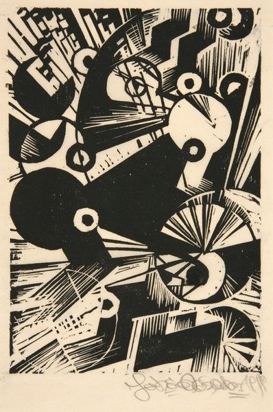 This woodcut was created by Johannes Molzahn, who lived from 1892 to 1965. Molzahn lived through both World Wars in Europe, and his art reflects the sociopolitical disruptions of the early 20th century. Molzahn was a Constructivist, and like other artists of the period, he was interested in abstraction as a way to express modern experience. Notice how recognizable forms have been broken down into geometric shapes. What do you make of the contrast between light and dark? The lack of color conveys a sense of starkness. Molzahn was removed from his teaching position after the Nazi party rose to power, and his work was labeled as “degenerate art.” While this piece does not directly represent the realities of living under Nazi rule, it can be interpreted as a visual response to the anxieties of his time. How does this piece make you feel?