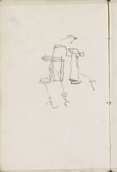 George Hendrik Breitner made this sketch, "Figuren op sleperswagens," with black chalk on paper. Breitner, living between 1857 and 1923, operated in a time of significant industrial and social change in the Netherlands. His work offers glimpses into the lives of ordinary people amidst this transformation. This sketch provides a candid look into the working class, depicting figures on moving wagons. Breitner's choice to focus on this subject matter places the laboring class at the center of his artistic exploration. He was known for capturing the energy and movement of city life, often showing scenes that reflected the everyday experiences of people from different social strata. In his sketches, the fleeting moments he captures and the raw reality of daily life resonate with the grit and resilience of the working class. This piece prompts us to consider how economic and social changes impact individual lives, and how art can both document and humanize these experiences.