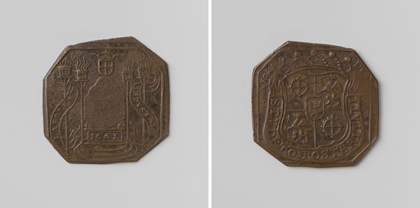 Editor: Here we have a metal accounting token, or "rekenpenning," titled "Hope for the Majority of Charles, Lord of the Netherlands," dating back to 1512. The portraits in miniature are beautifully rendered. It feels very formal and calculated, intended to project power. What can you tell me about this piece? Curator: These tokens functioned within a very specific social and economic context. The Rijksmuseum tells us this piece celebrates the hopes surrounding Charles’s future rule, yet these tokens themselves also functioned within the financial administration. It begs the question: how did seemingly simple objects solidify political power and influence perception? Editor: So, beyond their functional use in accounting, these tokens carried a political message? Curator: Exactly. Consider the imagery—a portrait of Charles and the elaborate coat of arms. Who was commissioning and distributing these? How would such an object be circulated amongst both administrators and political players to reinforce Charles's position, and their place in the same? Editor: That makes you wonder about the effect of constant repetition of this imagery in establishing Charles's authority. Almost like early propaganda. Curator: Precisely. The miniature scale made it portable, persistent, and accessible. What do you make of that crown placed prominently at the very top? Editor: I noticed that. It's a symbol everyone could immediately understand, connecting Charles to the legacy of the monarchy and the hopes that come with the symbolism. This wasn’t just about accounting. Curator: Indeed. It's about solidifying power and managing public perception within a complex web of social and political exchanges. I am beginning to feel that it projects its own power! Editor: Fascinating. I'll never look at a coin the same way again. Curator: Me neither. I really value that you were thinking about the public role this token played so centrally to the time, a wonderful and very interesting observation!