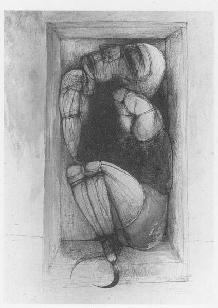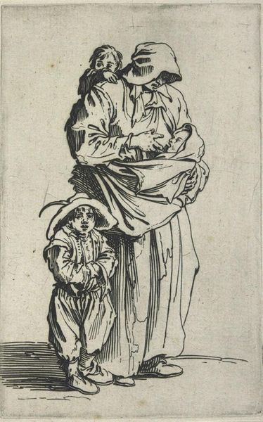 Hieronymus Bosch created this drawing titled "Mary and John" with pen in brown ink, sometime in the late 15th or early 16th century. The composition is dominated by the intertwined figures of Mary and John, cloaked in heavy, deeply shadowed robes. Bosch uses a dense network of fine lines to define form and texture. The folds of the garments create a dynamic interplay of light and shadow. The faces, contorted with grief, are rendered with an unflinching realism. Bosch's approach to line and form serves to amplify the emotional intensity of the scene. This drawing may appear traditionally religious, but the artist has pushed boundaries by incorporating elements of the absurd and grotesque into religious art, reflecting anxieties of his time. This unsettling combination destabilizes the viewer's expectations, inviting a deeper contemplation of the human condition. The formal qualities of the artwork serve not only as aesthetic elements but also as vehicles for challenging prevailing cultural and philosophical norms. Art perpetually invites fresh interpretations, making it a lively area for discourse and re-evaluation.