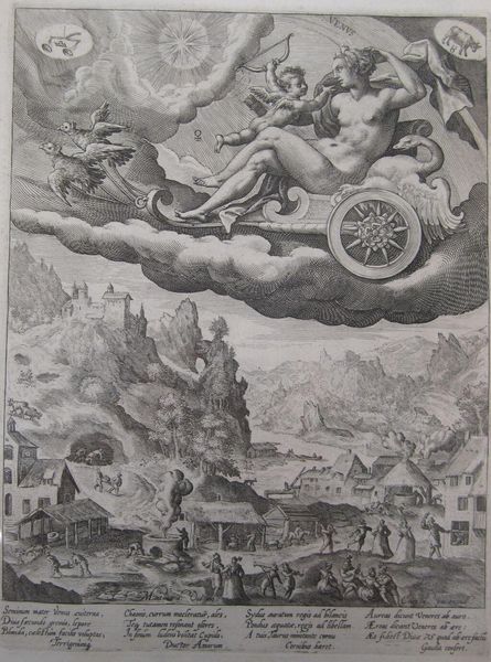 Curator: Here we have "Christus als overwinnaar," or "Christ as Victorious" by Guillaume Altzenbach, a print made sometime between 1650 and 1672 using engraving as the medium. What stands out to you? Editor: Immediately, it’s the verticality. Everything's floating, suspended in this cloudscape, pushing upwards toward...something. And all the figures, so densely packed, layered in these discrete tiers. It’s overwhelming. Curator: The layering is significant. Altzenbach uses this hierarchical arrangement to depict different aspects of Christ's triumph. At the top, we see the Holy Trinity, signifying divine authority and power, the God. Below that is Christ stepping triumphantly, but on the Cross. Editor: It's the figures beneath Christ that I find compelling. There's Mary and the infant Jesus, evoking notions of tenderness and humanity. Then you have those four figures on a lower tier...they appear like prophets, almost regal? What’s the narrative being built here? Curator: It represents a grand theological argument. Altzenbach synthesizes the Old and New Testaments. He places the crucifixion alongside Old Testament figures to suggest the fulfillment of prophecy through Christ's sacrifice. These biblical characters attest to Christ's place within the unfolding of religious history. Editor: So, it's a statement about continuity and legitimacy. But what about the context of the artwork? What was happening at this time influencing the production and reception of art like this? Curator: Altzenbach lived during a period of religious upheaval and reformation. This print would have served as a reaffirmation of traditional Christian dogma in a society grappling with evolving beliefs. Prints such as this played a crucial role in disseminating religious narratives, shaping public perception. Editor: A public tool then. The layered approach, densely populated, becomes less about pure reverence and more a means of engaging a diverse public, cementing their understanding and commitment to a particular set of doctrines, ideas. A clever rhetorical tactic using religious iconography. Curator: Exactly, and through printmaking, these theological ideas could be spread widely across society. Looking at "Christ as Victorious," it reminds us of how art intersects with larger power dynamics and cultural movements. Editor: Yes, how imagery, even seemingly devotional, serves very real social functions, defining who belongs, and who is outside. An engraving offering not just solace but instruction. Curator: This artwork prompts reflection on both the aesthetic and socio-political aspects of religious art of the period, really making this piece from Altzenbach that much more worth exploring and understanding.