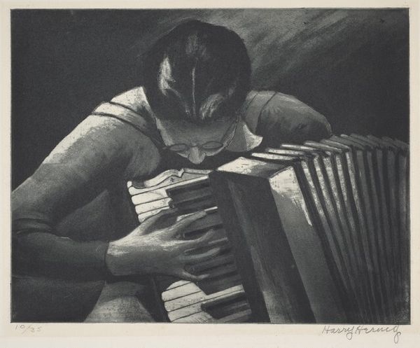 Curator: "Serenade," created around 1803 by Frederik Christiaan Bierweiler. It resides here at the Rijksmuseum. Editor: The charcoal drawing, for me, feels rather stage-like in its dramatic use of shadow and light. It suggests a performance, or perhaps a moment frozen from a play. Curator: The subject is depicted in what seems to be almost historical costume, doesn’t it? The slashed sleeves, the lute, and that incredibly elaborate hat – they conjure a bygone era of courtly love. Perhaps a commentary on fleeting romantic passions. Editor: Definitely a focus on texture. The plume of the hat seems ready to tickle your nose, and the fabric drapes are rendered with astonishing accuracy. Note, too, how Bierweiler directs our eye via carefully controlled tonal contrasts – it’s quite masterful. Curator: Look closely at the man’s expression. It conveys more than simple merriment; there’s a complex sense of longing, even a touch of melancholy beneath the surface bravado. His uplifted gaze is rather suggestive of a reaching. Editor: He's certainly idealized. This almost sculptural quality, stemming from the neoclassicist ideals permeating at the time, speaks to something universal – not just one fellow with a lute, but perhaps an embodiment of musical expression itself. Curator: I think that in works like "Serenade" that visual tradition also served to perpetuate, reinforce, even create, social hierarchies. Music, performance, all imbued with specific social weight… It wasn’t simply “entertainment," it was culture made visual. Editor: Yet I would say that even considering that dimension, there is such strength and confidence in the artistry present; the subtle gradation of shade, the interplay of textures, transcends those historical conditions. A very arresting composition. Curator: It offers a powerful meditation on cultural memory and personal emotions expressed through timeless visual language, for me. Editor: For me, this artistic study allows a rewarding and complex synthesis of both style and structure that makes viewing the work deeply fulfilling.