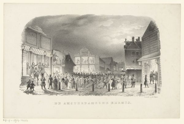 Editor: This engraving, titled "Skating Competition for Woman in Leeuwarden, 1805," by Jacob Ernst Marcus, captures a lively scene on ice. I’m struck by the sheer number of people depicted and the sense of community. What’s your read on this print, considering the socio-political context of the time? Curator: This work offers a fascinating glimpse into early 19th-century Dutch society, specifically regarding public spectacle and gender. Notice how the event itself, seemingly a sporting competition, becomes a platform for displaying civic pride and perhaps even societal norms. Who is prominently displayed in the engraving? Editor: The title suggests a focus on women, and I do see a number of women in the crowd, some seemingly participating in the skating. Is there a significance to depicting women in this public sporting event? Curator: Precisely. Consider how art functioned then: Often, prints like these served as social documents. Depicting women prominently participating – or being the focal point – in a public competition like this challenges or reinforces established gender roles within the specific context of early 19th-century Dutch culture and emerging notions of national identity. Were there specific skating clubs or associations emerging then, and who participated? How might that have played out in broader society? Editor: That makes sense. It highlights how seemingly simple scenes can reflect broader cultural shifts. So this isn’t just about skating; it's about observing and possibly shaping the role of women in the public sphere at the time. I wonder how contemporary viewers reacted to the scene in front of them. Curator: Exactly. The artwork serves as an active historical artifact in conversations about public space, social identity, and the dynamics of gender in art.