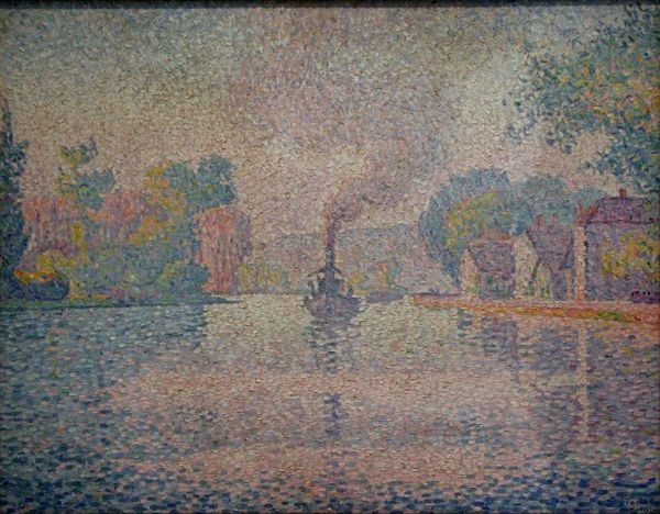 Curator: Here we have Christopher Richard Wynne Nevinson's "Venetian Twilight," currently held in the Tate Collections. Editor: It's so muted, almost monochromatic. All blues and grays, evoking a deep sense of stillness. I wonder what materials contribute to this moodiness? Curator: Nevinson likely used oils, thinned perhaps, to achieve that hazy, dreamlike effect. The brushstrokes seem quite deliberate, almost blurring the lines between the architecture and water. Editor: Right, that blurring speaks to the materiality of Venice itself—always at risk of dissolving back into the lagoon from which it rose. It’s about how we build and what endures. Curator: Indeed. It's a reflection on impermanence, capturing a transient moment in a city perpetually poised between grandeur and decay. You sense that, don't you? Editor: I do, and thinking about Nevinson’s process reminds me that it’s our labor and material choices that shape our understanding of places, real or imagined. Curator: A poignant observation, connecting the artist's hand to the city's spirit. Editor: Precisely, that's what truly resonates with me.
