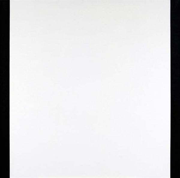Curator: Looking at Peter Joseph’s "Dark Ochre with Black Border" from 1973. There is a sense of serenity, don't you think? Like gazing at a desert landscape under a hazy sky. Editor: My first thought? It’s brown. Seriously, though, the black border emphasizes the expanse of the ochre field. Makes me wonder about the materials – was the ochre custom mixed, a specific pigment from a particular locale, reflecting something beyond simple aesthetics? Curator: Perhaps the pigment itself carries a memory. Joseph's abstraction is an attempt to capture a feeling, rather than represent something concrete. A resonance in color, if you will. Think about what the color brown means, of being grounded, or even mired down, then seeing this almost monochrome rectangle hovering, wanting freedom... It’s heartbreaking, or heartening. Editor: Color association is all well and good, but the physical construction tells a different story. That careful taping, the even distribution of paint, suggests a real tension between industrial processes and pure, abstract expression. How did Joseph balance the handmade with the machine-made? That border isn’t just visual; it's a decision about labor. Curator: Maybe he chose it intuitively! Remember Joseph’s writings: a belief in a transcendent aesthetic experience, a pure vision emerging from simple forms. That’s hard labor, indeed, not in terms of mechanics but emotionally and spiritually. Editor: Agreed about emotional labor, and of course those intentions are visible and valuable. But how does that stack up against, say, the history of ochre as a pigment? Its use by so many diverse societies as protection or adornment? Surely this is connected to ideas about taste and how things come into our space... it could be a really exciting jumping off point. Curator: It sounds as if the simple forms open to the past through material use, yet soar to spiritual places, don't you think? A contradiction that Joseph revelled in. Editor: Well, looking more closely at the painting after our discussion, I'm considering that there might just be more to "simple" brown than meets the eye...