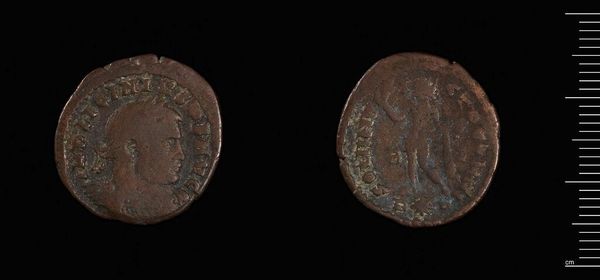 Editor: This is an ancient bronze coin, an AE3 of Licinius I, struck in Aquileia. It's small and worn, yet it seems to carry so much history. What can you tell me about its significance? Curator: Coins like this served not only as currency but also as powerful propaganda. Consider how Licinius I used imagery to legitimize his rule, especially during periods of intense political rivalry. The messages conveyed through these coins shaped public perception. Editor: So, it was a way of controlling his image and narrative? Curator: Precisely. The placement of mints, the choice of imagery, everything was deliberate. What do you think about the power of images to shape history? Editor: I hadn't thought about it that way. Curator: Reflect on how even seemingly small objects like this reflect larger social and political dynamics. It changes your perspective, doesn’t it?