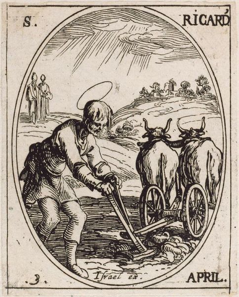 This engraving, etched by Wenceslaus Hollar, depicts a scene from the Dance of Death, capturing our inevitable rendezvous with mortality. Here, a pedlar trudges forward, weighed down by his wares, yet it is Death that is his true burden, dragging him along. The ‘Dance of Death,’ or *Danse Macabre*, motif echoes through the ages, surfacing in medieval morality plays and visual arts as a reminder of death's indiscriminate grasp. Notice the pedlar's gesture—a pointed finger, a desperate attempt to direct his fate, a futile act against the skeletal figure. This symbol of pointing appears throughout art history, from accusatory figures in biblical scenes to defiant stances against tyranny. In the pedlar's case, it is a scream into the void, a primal reaction against the inevitable. Death as a skeleton is a potent symbol, stripped of earthly identity. This iconography resonates with our deepest fears, tapping into a collective memory of plagues and wars where death was an ever-present companion. Hollar masterfully uses this image to provoke contemplation on the fleeting nature of life, a universal theme that transcends time.
