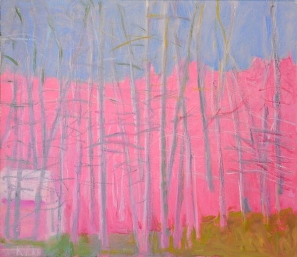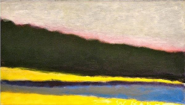 Wolf Kahn created "Gray Cloud Magenta Water #145" using oil paint, a material that has been central to artistic expression for centuries. Oil paint, made from pigment suspended in oil, allows for rich color and a smooth, blendable texture. Kahn's choice of oil paint and the way he applies it – in loose, horizontal bands – give the landscape a dreamlike quality. The magenta water shimmers, the gray cloud looms, and the whole scene feels both familiar and otherworldly. Oil paint, though a traditional medium, is also a product of industrial processes – pigments need to be refined, oils extracted and processed, and the paint itself manufactured and packaged. This makes the act of painting not just a personal expression, but also a participation in a wider economic system of production and consumption. So, when we look at "Gray Cloud Magenta Water #145," we can appreciate both Kahn's individual artistic vision and the broader material and economic context in which that vision took shape.