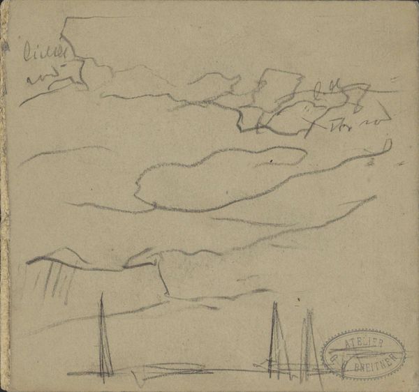 Johan Antonie de Jonge made this graphite sketch, titled "Gezicht op een pad", sometime between the late 19th and early 20th centuries. The delicacy of mark-making suggests artmaking as a kind of quiet contemplation. The lines almost feel like thoughts being gently laid down on paper. There's a real sense of vulnerability in the exposed process. You can see the artist mapping out the landscape, feeling his way through the composition. The graphite is used in varying pressures, creating a tonal range that suggests light and shadow. Look at the area where the path meets the horizon; the lines are a little more frantic and concentrated. It’s almost as if the artist is unsure of what exists beyond. This sketch reminds me of the early landscapes of Cezanne, but with an even lighter touch. Both artists share a fascination with the process of seeing and translating the world onto a two-dimensional surface. It's a reminder that art is not just about the finished product, but about the journey of exploration and discovery.