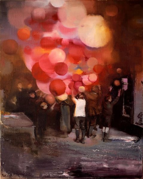 Joshua Flint made Dollhouse III using paint, sometime around now. It's built with layers that feel both precise and totally intuitive. The colors are muted, kind of dreamy, all blues and browns. Look at the surface, how Flint lets the paint do its thing. It’s not about hiding the process, but about embracing it. See how the light from the city kinda dissolves into the darkness? There’s a freedom in how he applies the paint, thick in some spots, thin in others, almost like he’s sculpting with the brush. That little girl with the big bow, she's like a ghostly presence, caught between worlds. It reminds me a bit of Gerhard Richter, in how he plays with focus and memory. Flint isn't trying to give us all the answers, and the lack of answers, the ambiguity makes it so compelling. It’s like he’s inviting us to get lost in the possibilities, to find our own story in his world.
