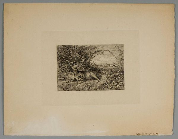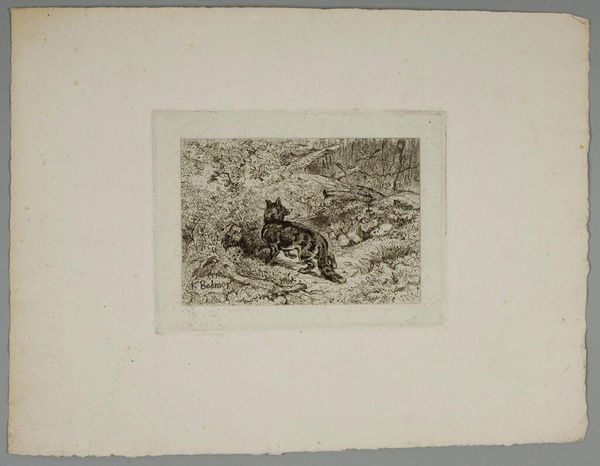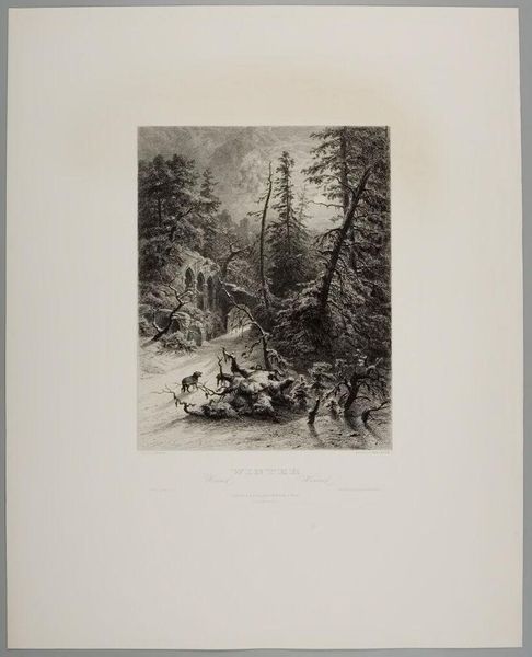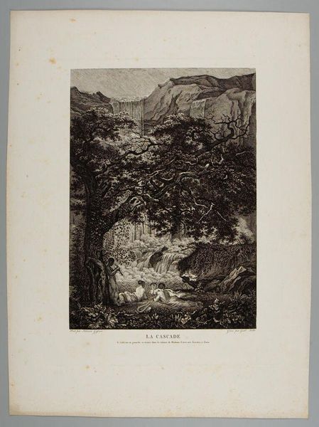 Editor: This is Carl Wilhelm Kolbe’s “The Conversation at the Pool.” The dense hatching creates a stark contrast. I wonder about the figures in the landscape. What do you see in this piece? Curator: Kolbe's technique is fascinating. Look at the labor involved in that intricate hatching, replicating nature through sheer effort. It elevates printmaking, doesn't it? Also, consider its dissemination – this image becomes a commodity, divorced from its creation. Editor: So, the meaning isn’t just in the image itself, but in its production and distribution? Curator: Precisely! The print’s value lies in the tension between its handcrafted origin and its potential for mass consumption. Editor: I never thought of it that way. It's like a miniature industry, all contained in this one image. Curator: Indeed.