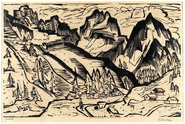 Editor: This is Melchior Küsel's "Mountains Spotted With Pine Trees and Man With Walking Stick Ascending a Path." The lack of color creates a serene, almost somber mood. What do you see in this piece? Curator: The figure with a walking stick immediately brings to mind the archetype of the wanderer, laden with symbolic weight. Notice how the towering pines dwarf him, suggesting a confrontation with the sublime, evoking emotional responses to the overwhelming power of nature. Editor: That’s interesting, the scale and the trees as symbols. Curator: Yes! The pine, for example, can signify resilience, memory, and even immortality across cultures. Do you think Küsel was aware of these symbolic associations? Editor: Probably, since it adds such depth! I hadn’t considered the cultural implications before. Curator: Exactly, and that's how we reveal cultural memory!